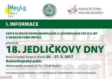 Již 18. Jedličkovy neuroimunologické a likvorologické dny proběhnou ve dnech 26. - 27. května 2017 v Kaiserštejnském paláci na Malostranském náměstí v Praze.