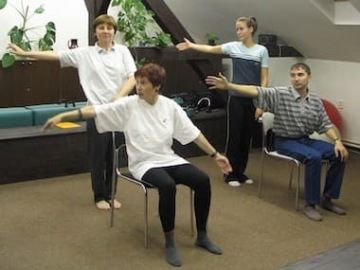 Cvičení vždy přizpůsobuje možnostem lidí, kteří přijdou, a tak mohou tančit jak lidé chodící, tak lidé na vozíku nebo židli. Terapii bere zároveň jako možnost k setkávání. Lidé se mohou s ostatními podělit o své zkušenosti a získat rady, jak zvládat nové problémy. Hudba, kterou při terapii používá, pomáhá nejen k vedení pohybu, ale zároveň zlepšuje náladu.
