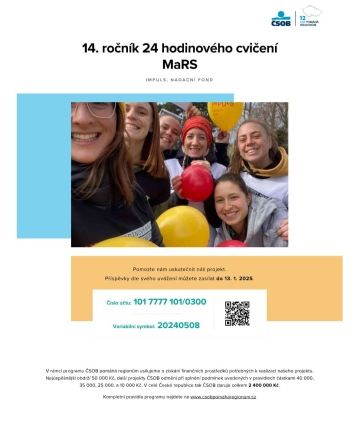 Podpořím projekt: https://csobpomaharegionum.csob.cz/detail-projektu/3925-14-rocnik-24-hodinoveho-cviceni-mars